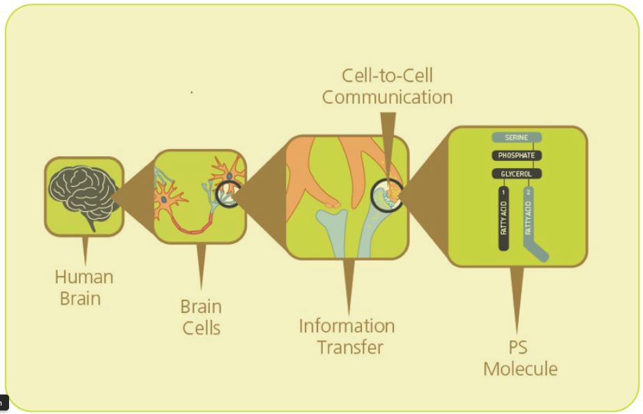 मानव मस्तिष्क का 60% शुष्क भार लिपिड से बना होता है, मुख्य रूप से फॉस्फोलिपिड। लिपिड उचित मस्तिष्क समारोह के लिए आवश्यक हैं, क्योंकि वे मस्तिष्क की संरचना और सिग्नलिंग सिस्टम को प्रभावित करते हैं। फॉस्फेटिडिलसेरिन (PS) एक फॉस्फोलिपिड है जो कोशिका झिल्ली का एक घटक है और तंत्रिका कोशिकाओं की संरचना और कार्य में महत्वपूर्ण योगदान देता है। यह सेल-टू-सेल संचार, सूचना हस्तांतरण, सिग्नलिंग आदि में मुख्य भूमिका निभाता है। नैदानिक अध्ययन इस पोषक तत्व के 100 मिलीग्राम / दिन के साथ किसी के दैनिक आहार के पूरक होने पर लाभकारी प्रभाव प्रदर्शित करता है।